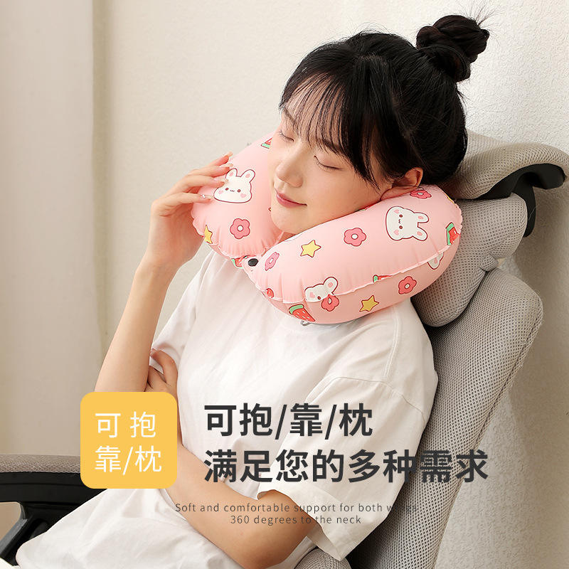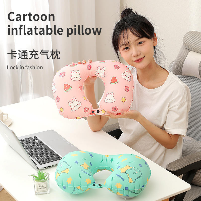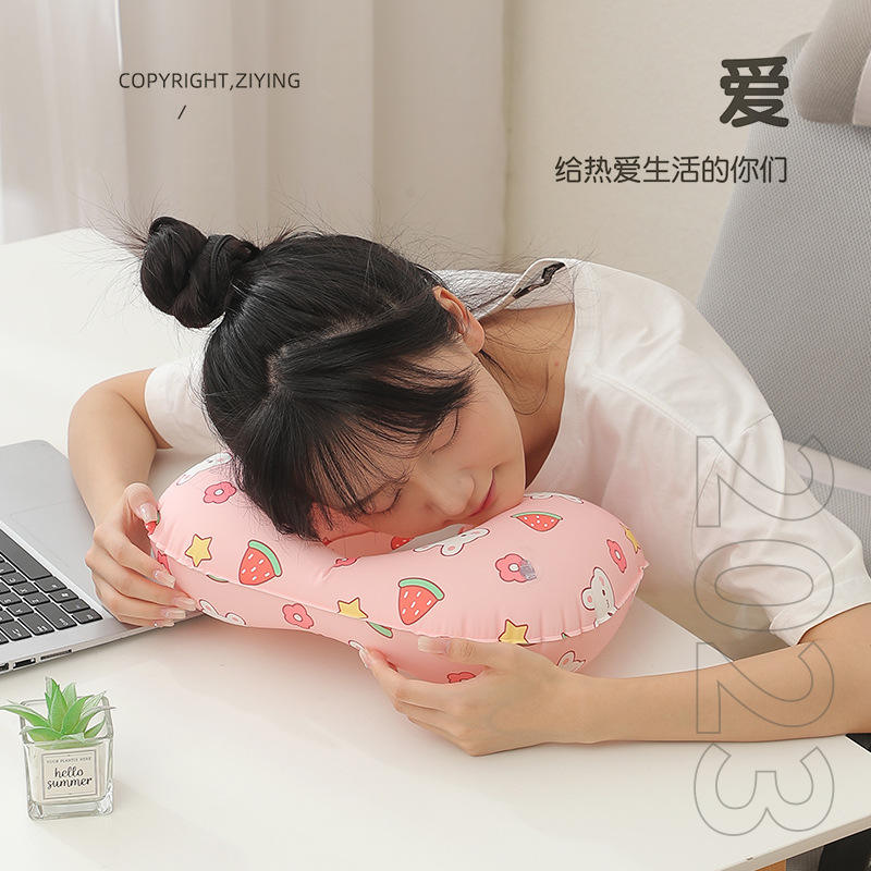 Oreiller de voyage gonflable en forme de U avec motif de fruits, en polyester, portable, rafraîchissant, pour une utilisation en extérieur