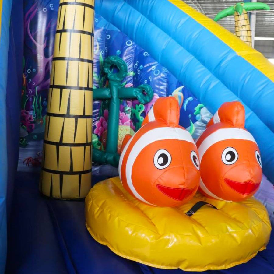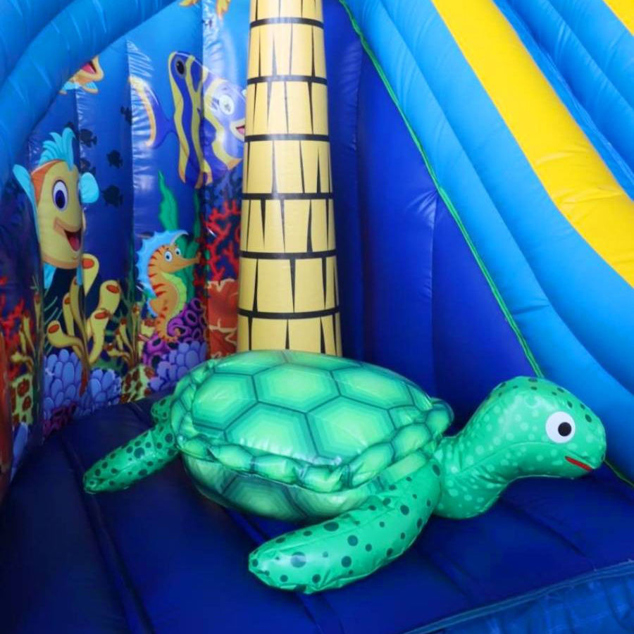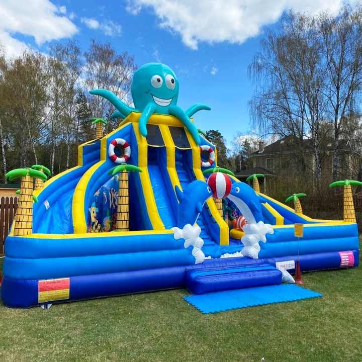 Toboggan aquatique gonflable sur le thème de l'océan, château gonflable avec piscine à balles, double toboggan, château gonflable pour enfants