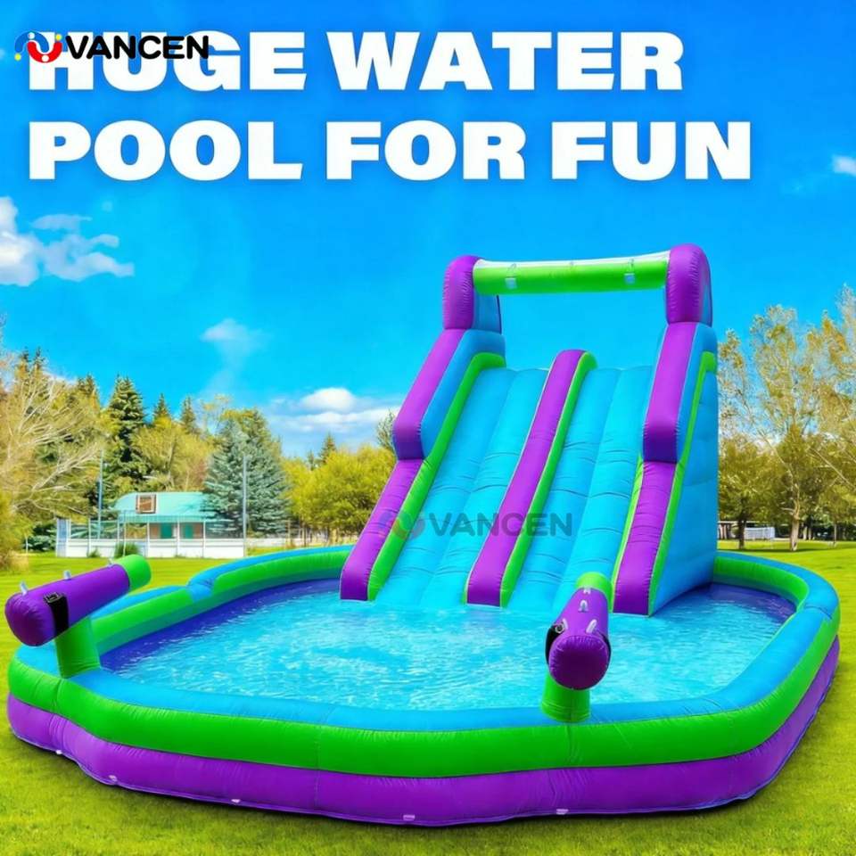 Château gonflable avec toboggan aquatique
