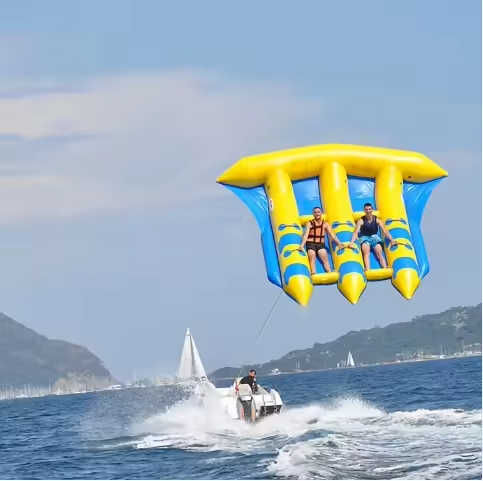 Bateau banane gonflable jaune, bateau tractable gonflable, sport nautique pour 3 à 5 personnes, amusement aquatique, parc aquatique
