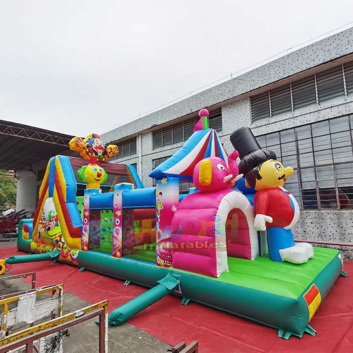 Structure gonflable de cirque et de carnaval, parcours d'obstacles, château gonflable avec toboggan, pour extérieur