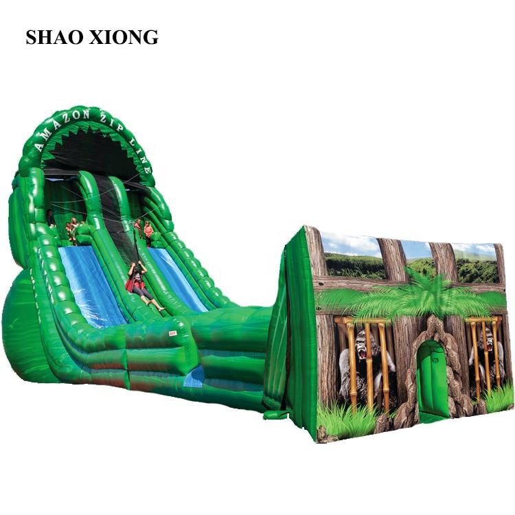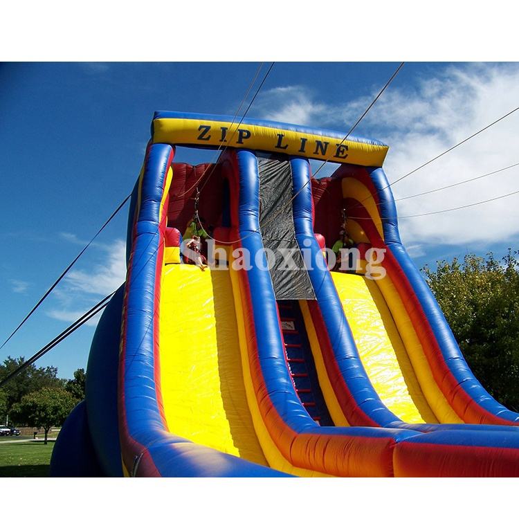 Jeu de balles gonflables Zip-line Énorme Boot Camp Gonflable Hippo Zip Line Zipeline Slide