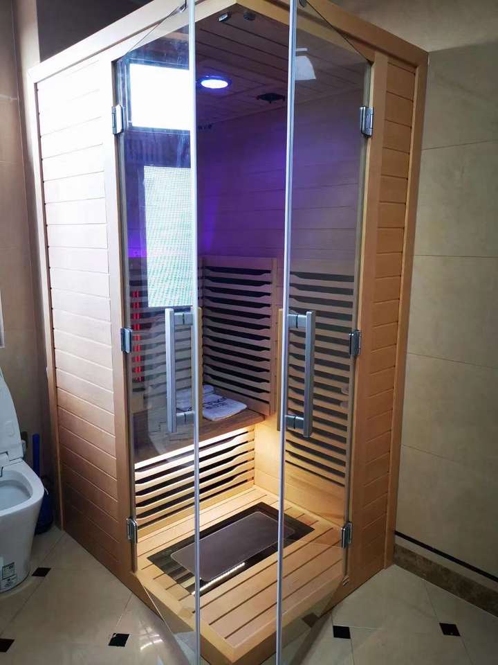Panneau de chauffage infrarouge pour sauna miniature en bois de pruche et de cèdre, sauna sec et vapeur pour 2/4 personnes