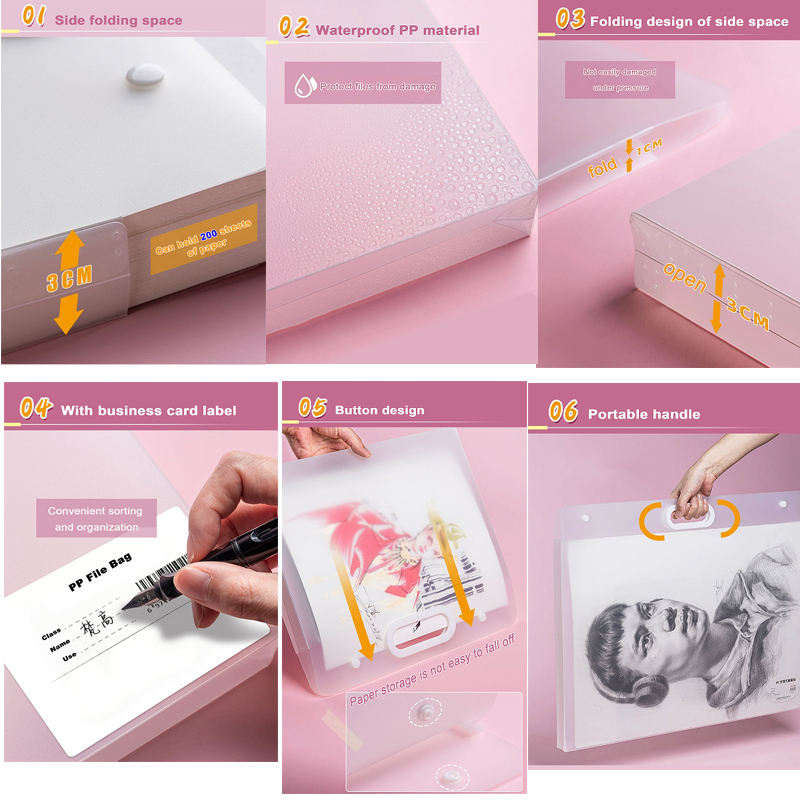 Porte-documents transparent A4 Ingenuity avec bouton en PP, sac de transport promotionnel pour usage professionnel, scolaire, bureau, portable, pour œuvres d'art