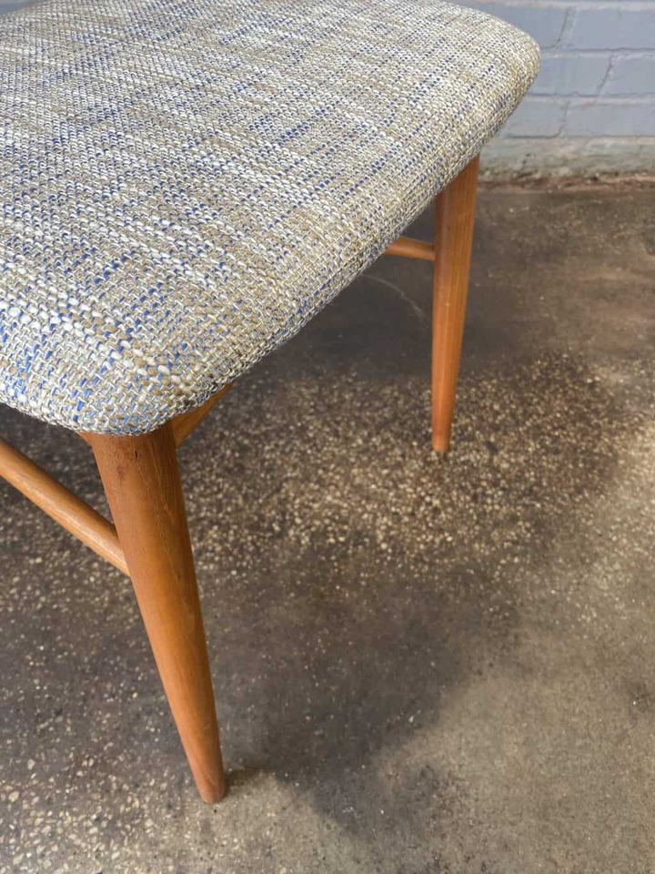 Chaise de salle à manger Inggit de style mid-century, assise en tissu imperméable, bois de teck massif, finition noyer, pour l'intérieur et l'extérieur, meubles de maison, appartement