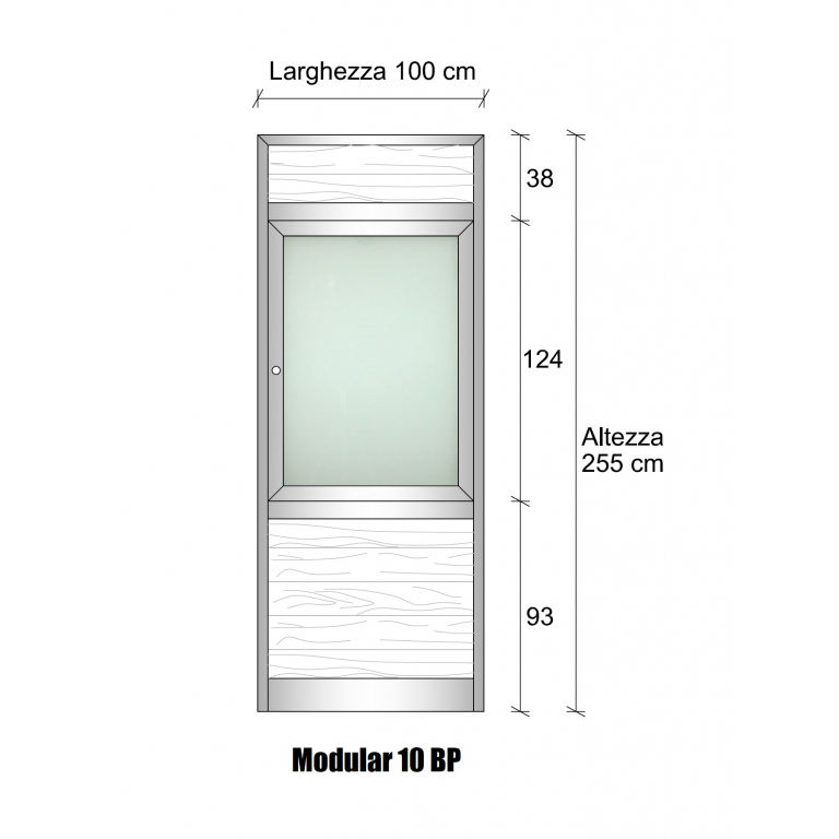 Cloison de séparation intérieure en aluminium brun et verre opale avec perles, 1 traverse basse - H2550xl1000 mm