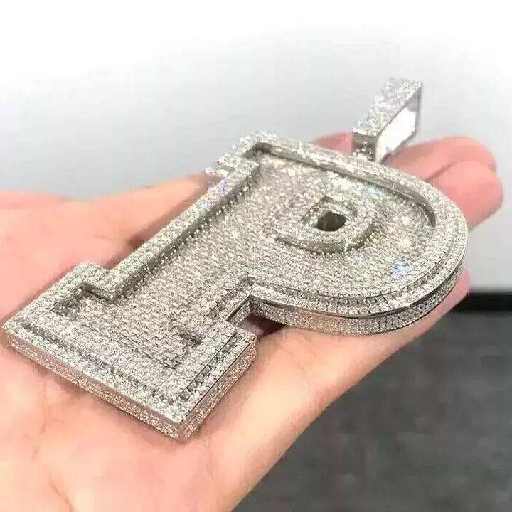 Pendentif en argent sterling 925 avec initiale personnalisée, design hip-hop élégant, prix de gros, pendentif en moissanite