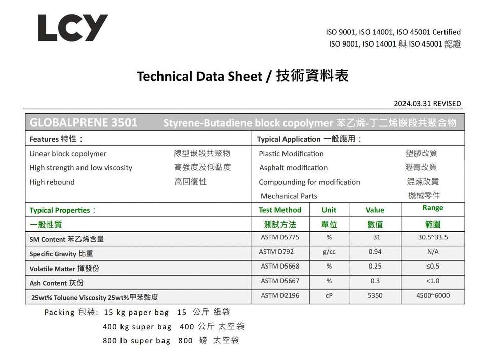 Styrène Butadiène Styrène SBS RésineNom du produit