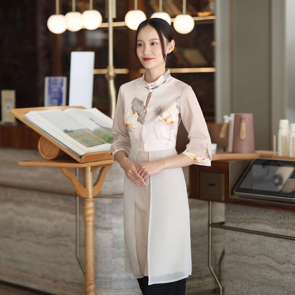 Encre fleurs Design unisexe haut de gamme qualité 100% coton antistatique travail manteau Restaurant hôtel hôtesse japonais serveur uniforme