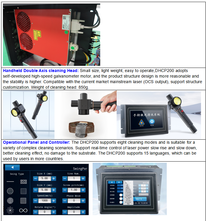 Machine de nettoyage de laser à fibre pulsée tenue dans la main de rouille de peinture à l'huile d'encre 200w pour le moteur de voiture de moule de pneu raycus max jpt forme multi légère