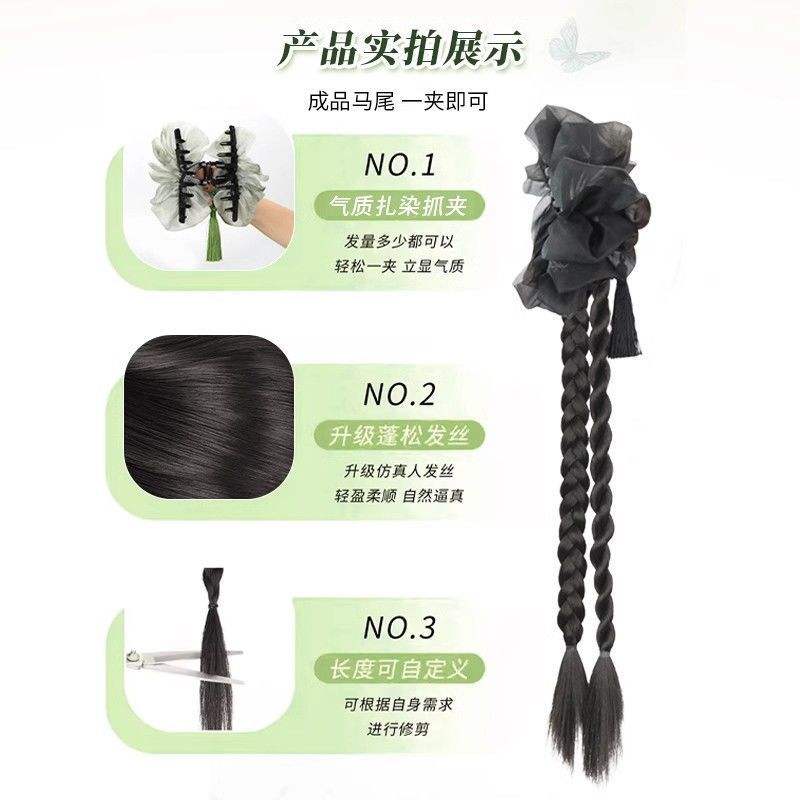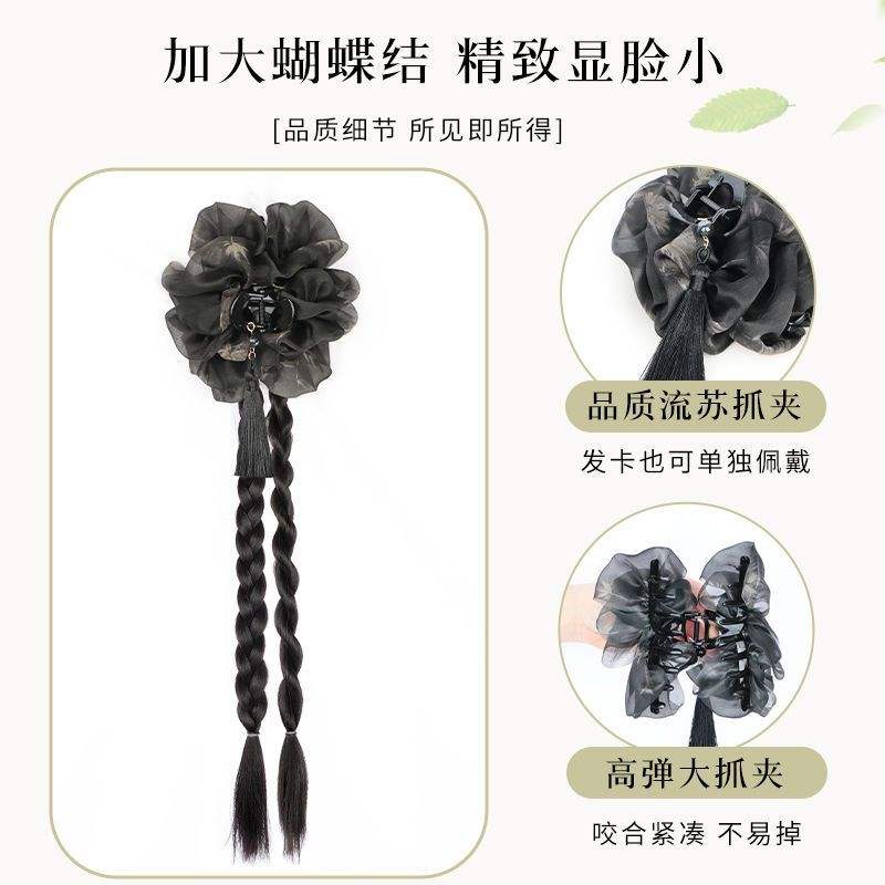 Queue de cheval tressée à pampilles style encre de calligraphie avec clip, cheveux longs synthétiques, style chinois pour femme