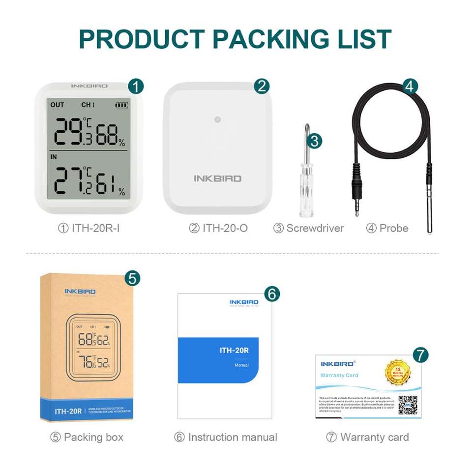 Inkbird ITH-20R Hygromètre numérique Thermomètre d'intérieur avec un émetteur pour la maison, la cuisine, la chambre de bébé, la cour, le garage