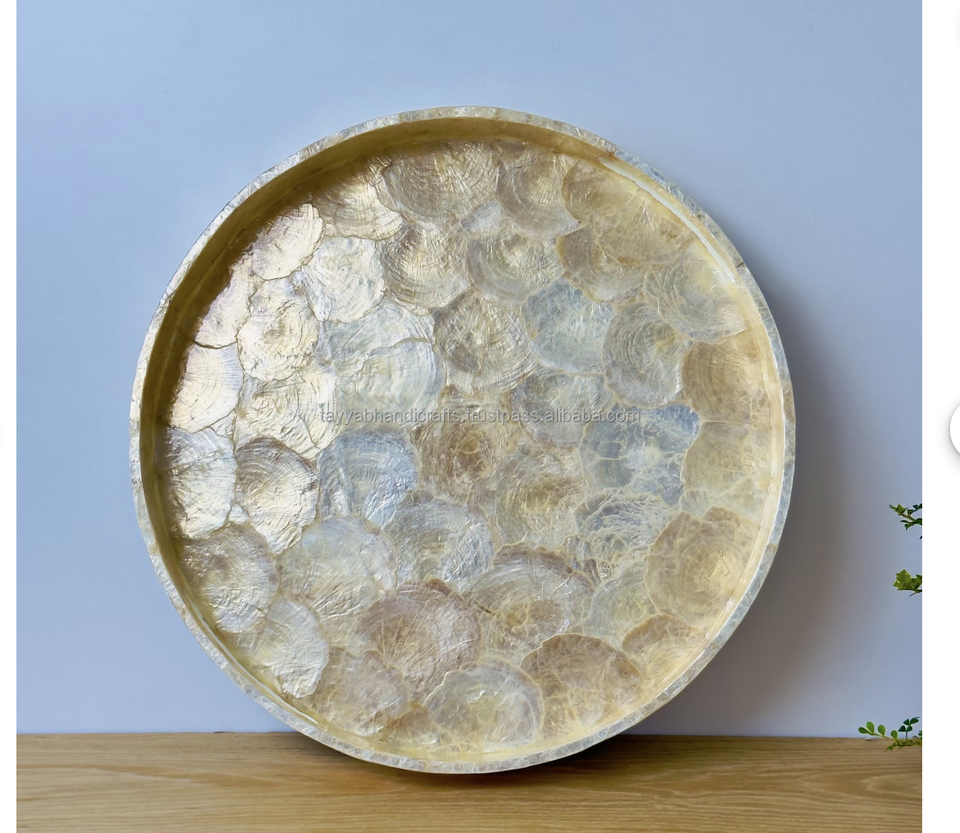 Plateau à café en incrustation pour la maison, plateau de service rond élégant fait à la main, plateaux en nacre pour la nourriture et les boissons