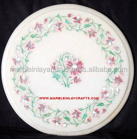 Table à manger en marbre avec incrustation de marbre, Table à manger