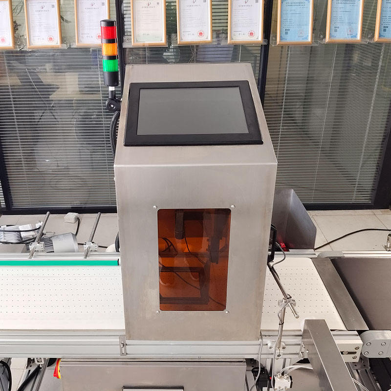 Machine d'inspection de codes de date et de codes QR en ligne : 360 ° Système de numérisation par caméra, comparaison avec les données maîtresses, rejet pneumatique pour les lignes de production