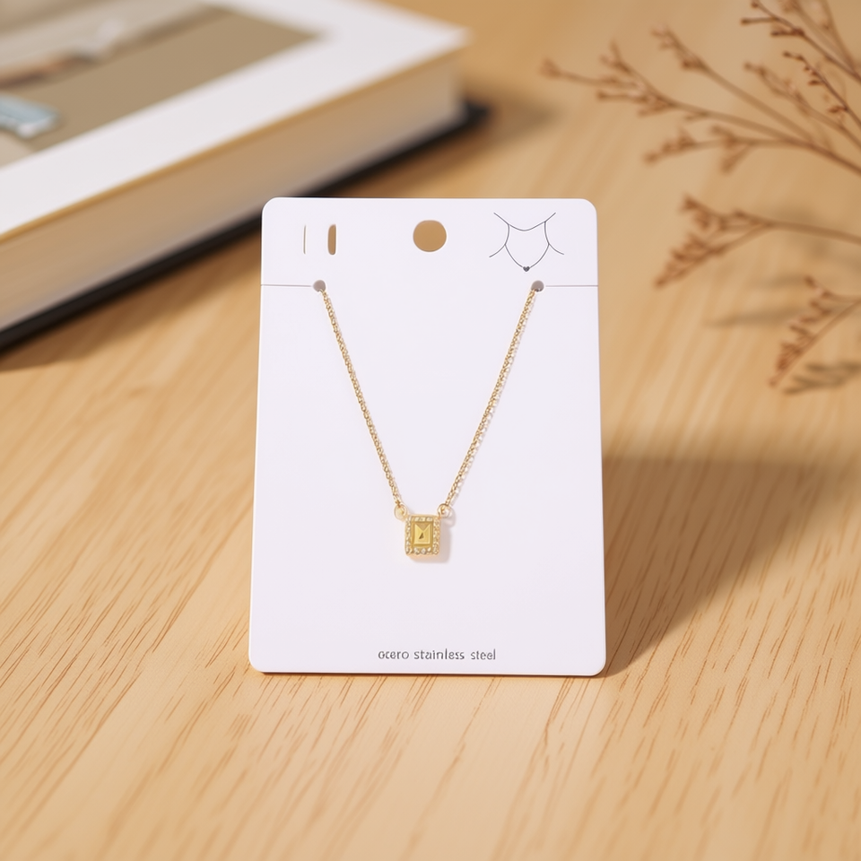 Collier carré en diamant plaqué or en acier inoxydable, minimaliste, à porter au quotidien, unisexe