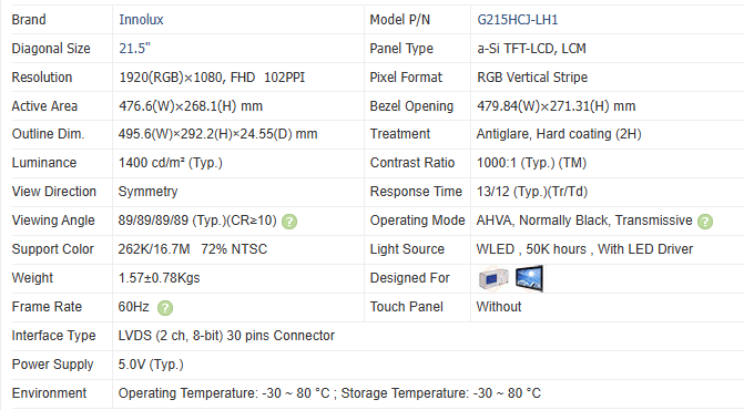 Type de panneau:Écran LCD TFT-LCM A-Si