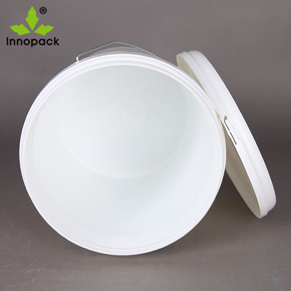 Innopack 15L Black Food Grade PP Plastic Round Paint Bucket with Sealing White Lid Anti-static for Oil & Water Use