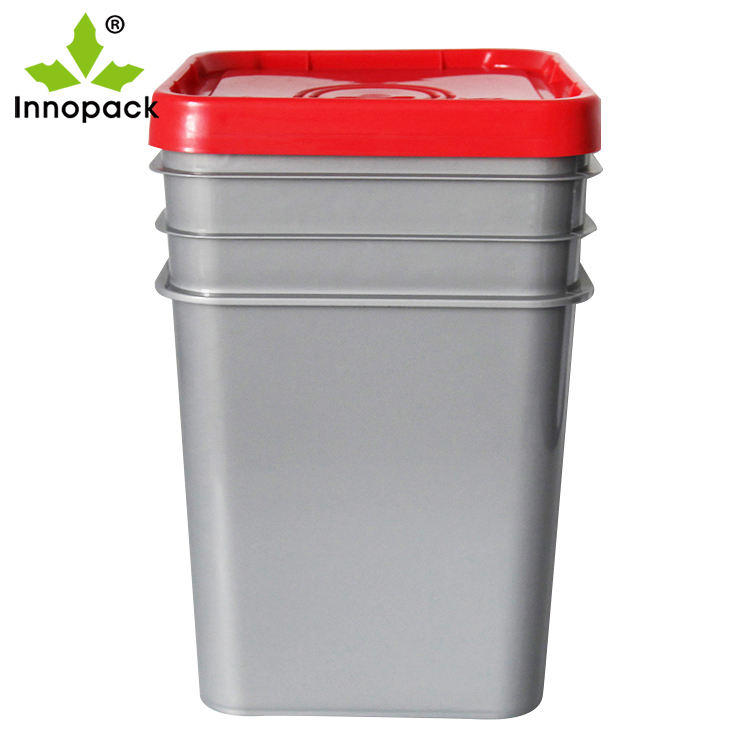 Seau carré Innopack 20L en PP vierge de qualité alimentaire, 5 gallons, avec poignée métallique et couvercle simple, certifié ISO9001 HACCP