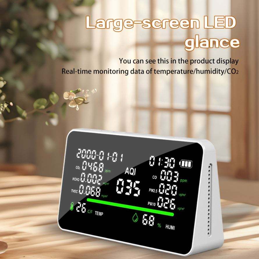 Analyseur d'air numérique innovant 11 en 1 avec affichage en temps réel, alarme sonore, TVOC précis, PM