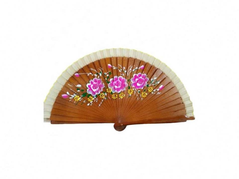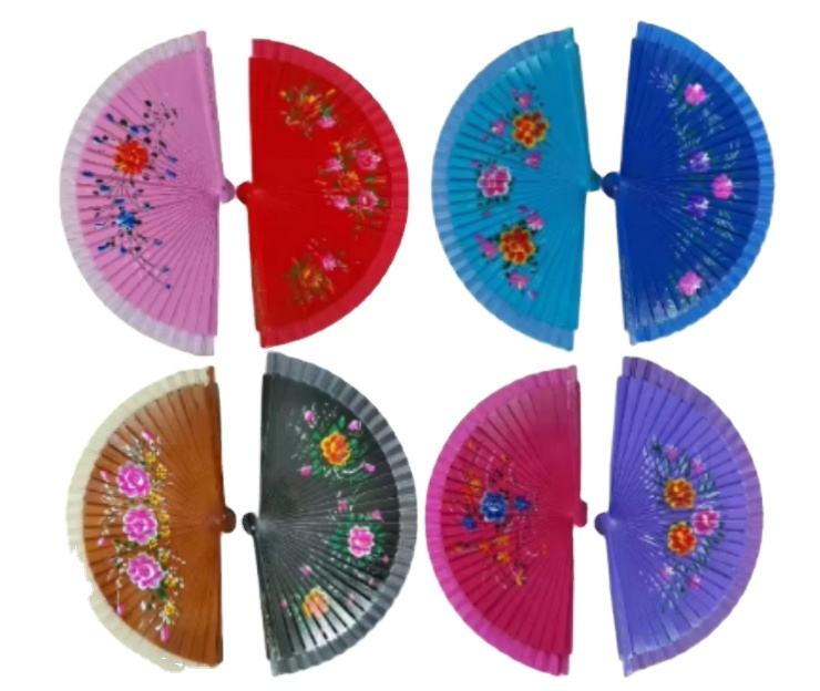 Éventail espagnol innovant en bois de 23 cm, double face, peint à la main, en tissu de 2,5 cm, pour souvenir culturel