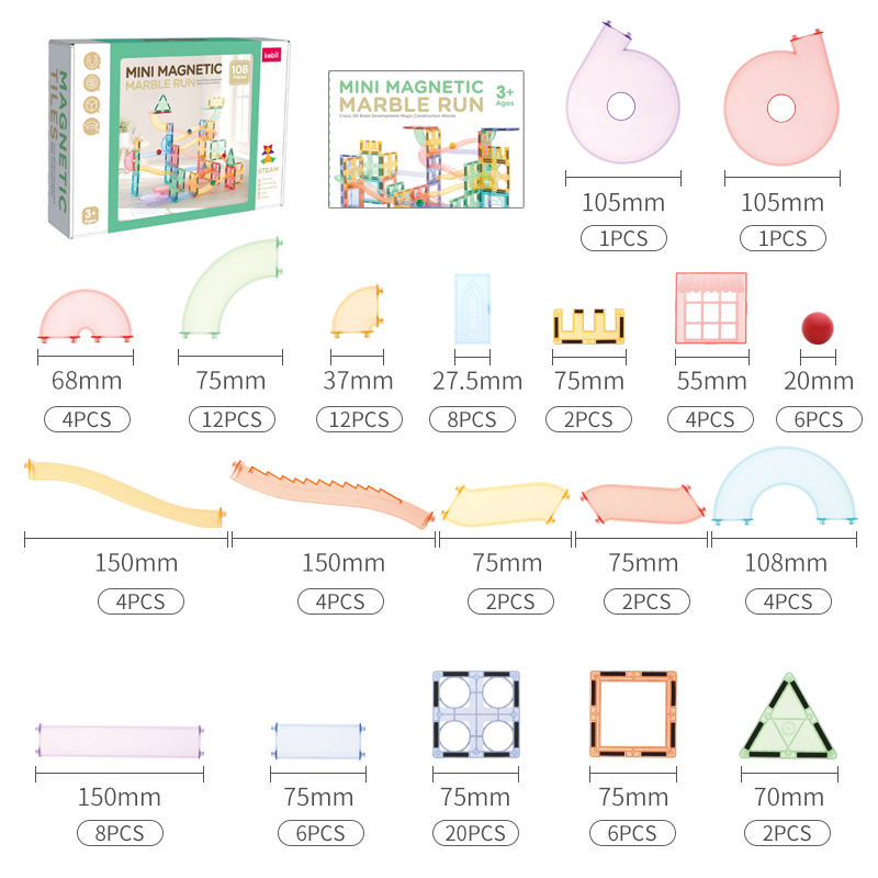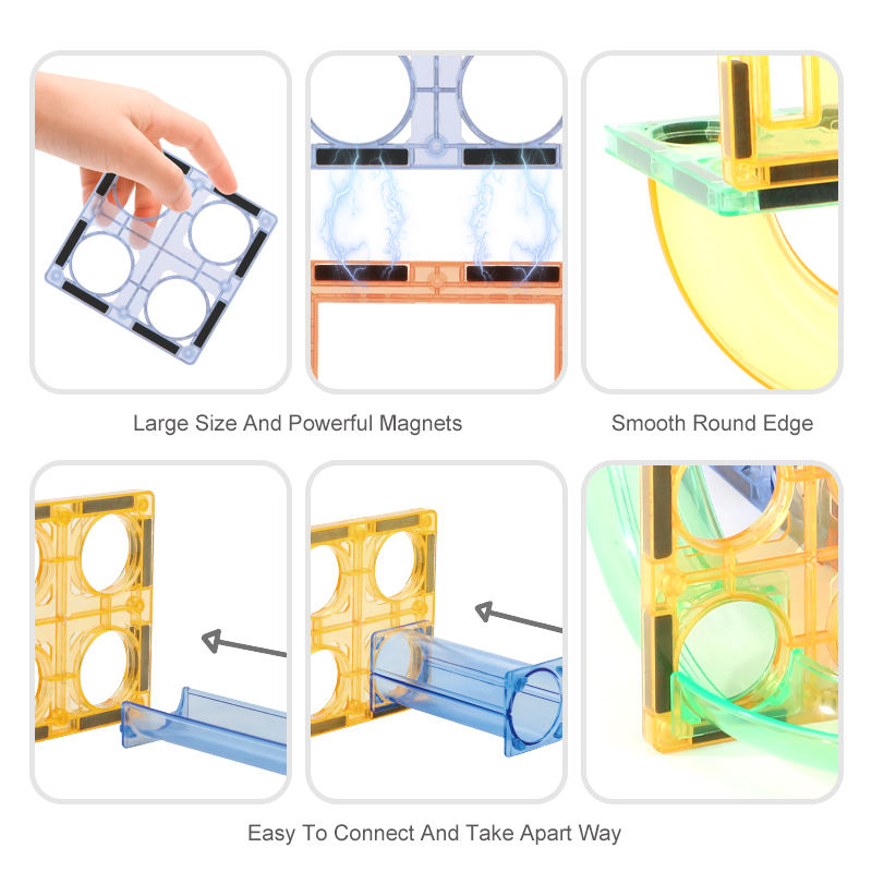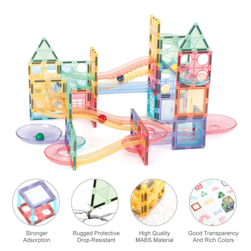Tige 3D innovante Piste de course éducative Couleurs primaires Marble Run Tuiles magnétiques Blocs de course en marbre magnétiques nationaux pour les enfants