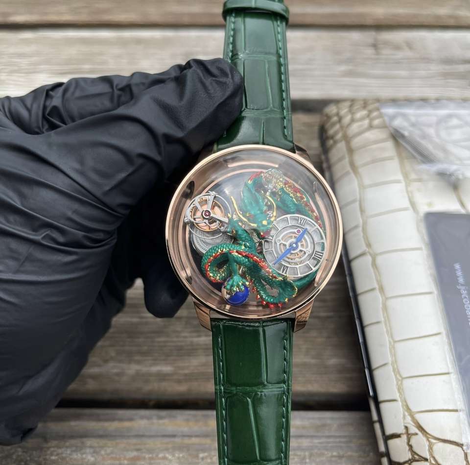 Montre à quartz pour homme de luxe Innovante Astronomia DRAGON HAIOU, or rose, cristal saphir transparent, boîtier en acier inoxydable, bracelet en cuir