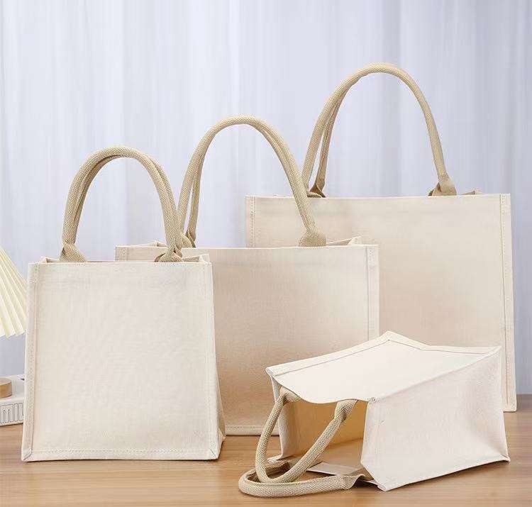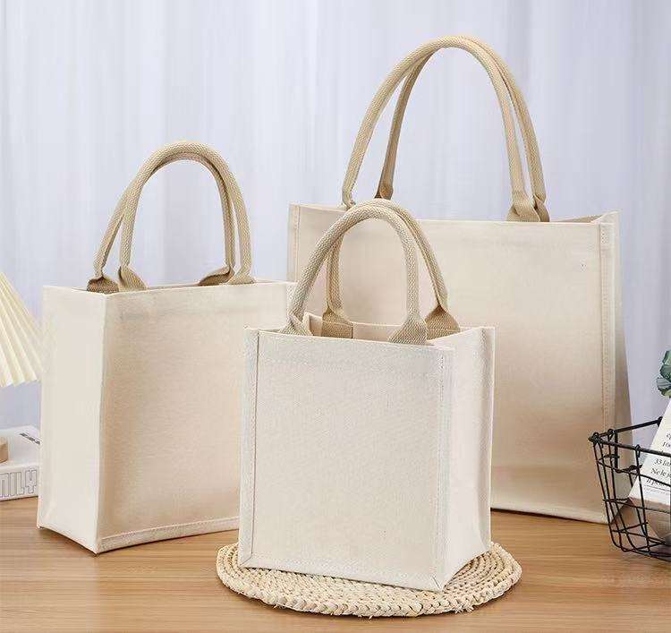 Conception personnalisée innovante sac fourre-tout à provisions réutilisable nouvelle mode sacs en toile unie lin Calico coton biologique imprimé pour cadeau