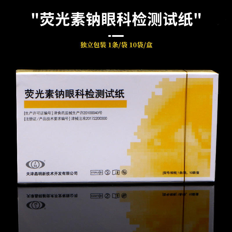 Une boîte de bandelettes de test de sodium fluorescéine Jingming