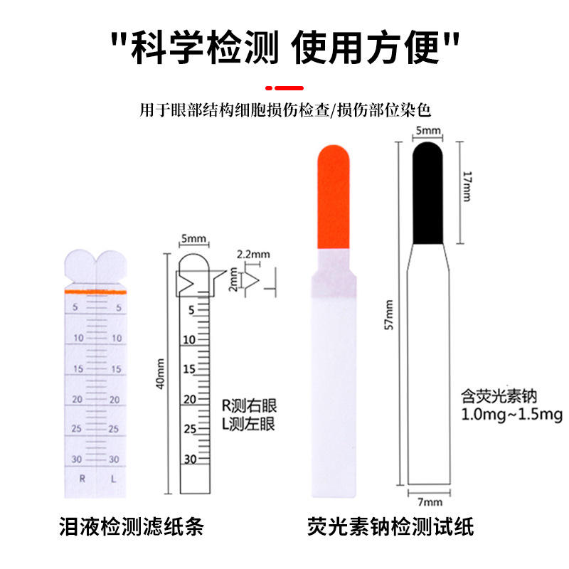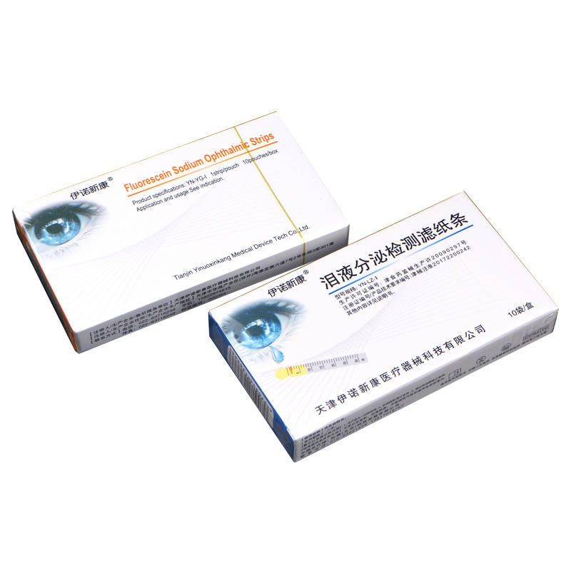 Une boîte de bandelettes de test de fluorescéine sodique Inonewcom
