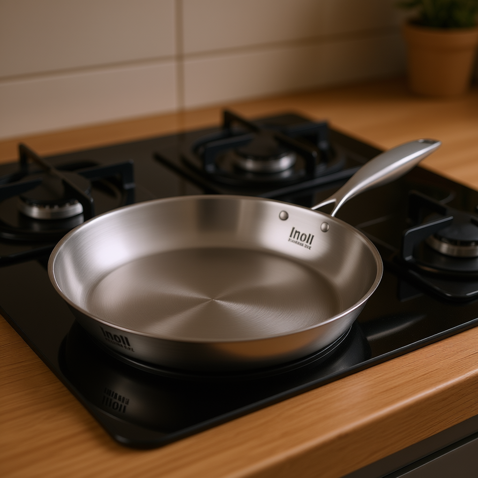 Poêle à frire Inoll en acier inoxydable 22 cm, compatible induction, intérieur antiadhésif en métal, design minimaliste pour la cuisine à domicile
