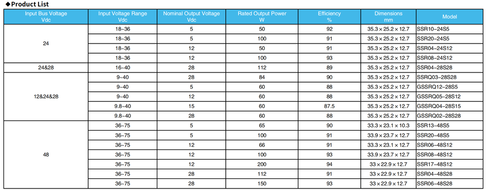 12V, 24V, 48V, 28 voltsTension d'entrée