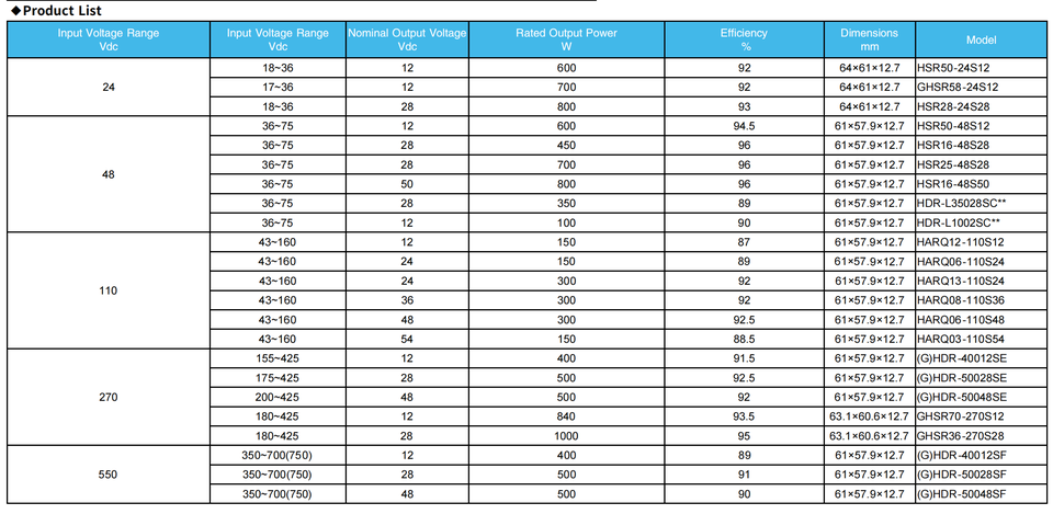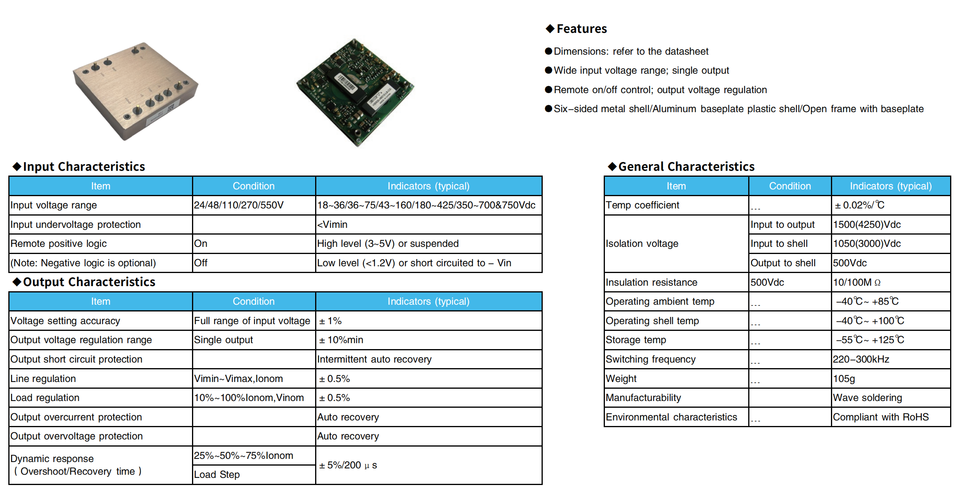 Convertisseur Buck synchrone à haute efficacité avec refroidissement par air, alimentation à tension variable, entrée 24/48/110/270/550V, sortie 15~48V