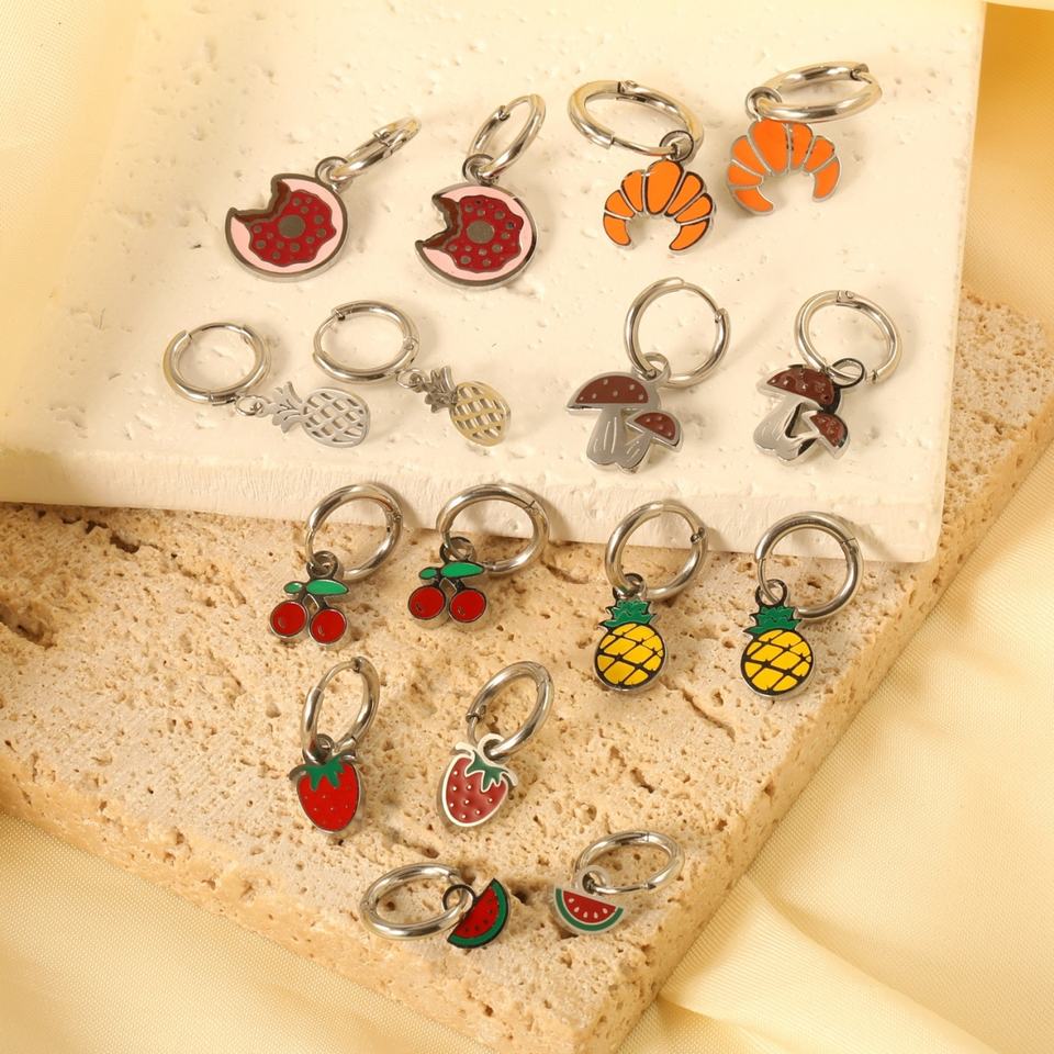 Boucles d'oreilles créoles en acier inoxydable 316, design INS, colorées, en forme de champignon et de cerise, plaquées or 18 carats, mignonnes, bijoux fantaisie fruits et aliments, vente en gros