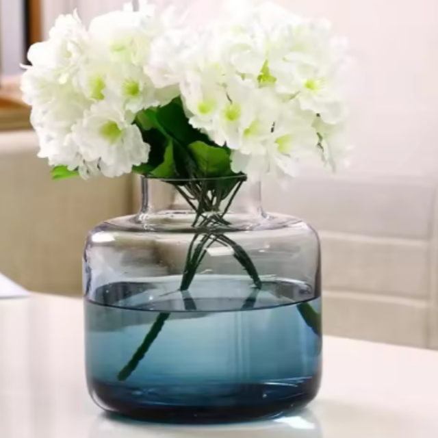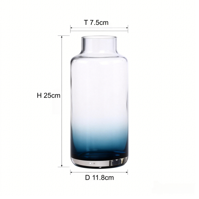 Vase en verre sodocalcique translucide, style européen, dégradé bleu-vert, forme droite, modèle CVH941, pour décoration florale de pièce.