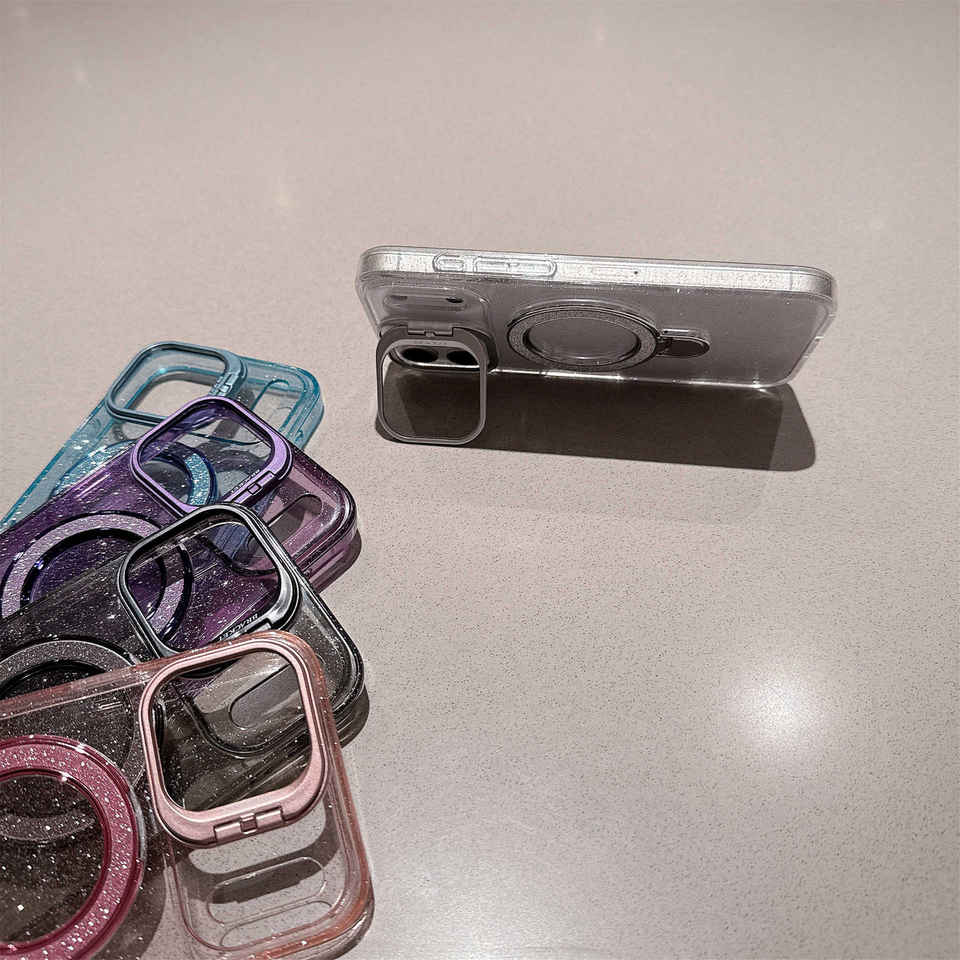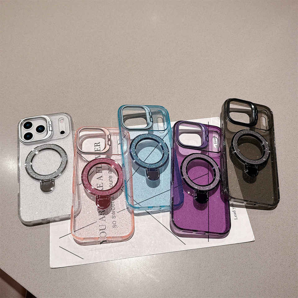 Coque de téléphone Ins Lens Stand pour iPhone 17 16 15 14 13 12 11 Pro Max, simple, couleur unie, souple