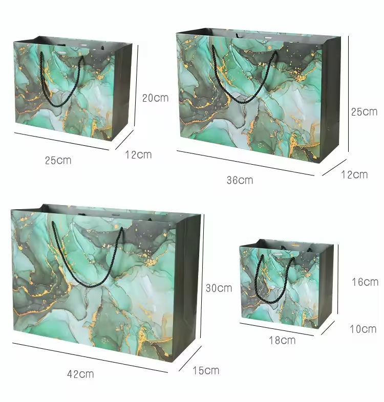 Sac cadeau à motif marbré, joli sac cosmétique vert foncé, sac d'emballage exquis avec nœud