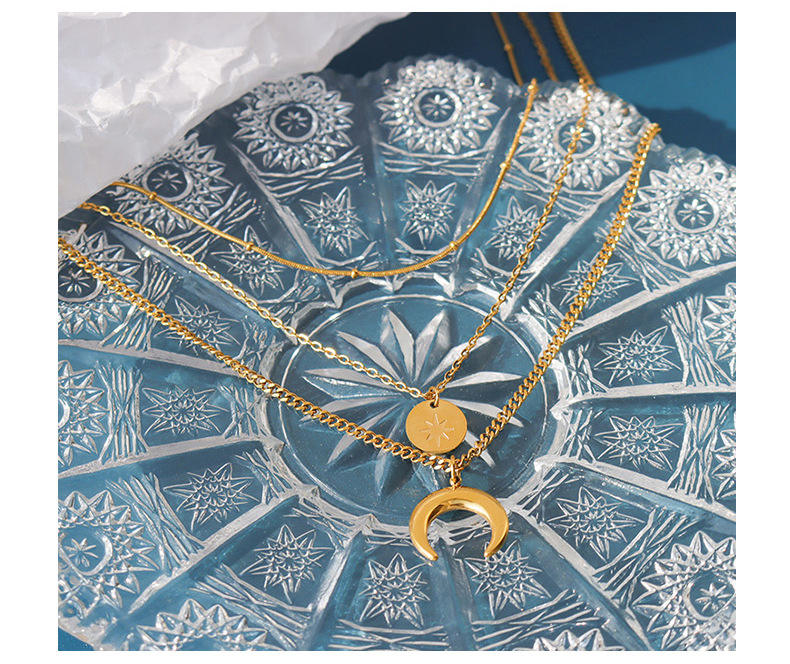 Ins Niche Star Moon Sun Multi-layer Chain Necklace Titanium Stainless Steel Plated 18k Gold Pendant Jewelry Necklace