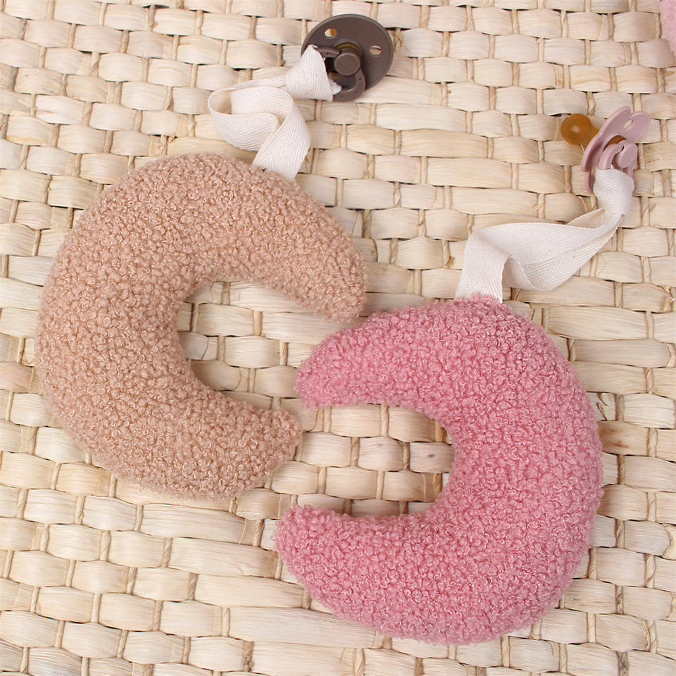 Attache-sucette en peluche populaire en forme de lune, pendentif en acrylique, chaîne de sucette, jouet apaisant pour la crèche, attache-sucette 0-12 mois