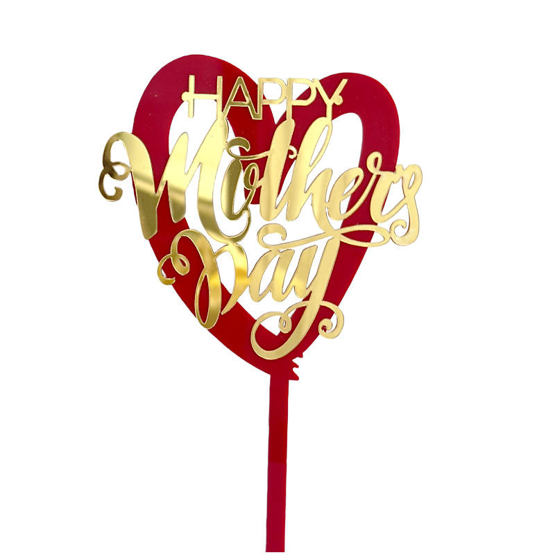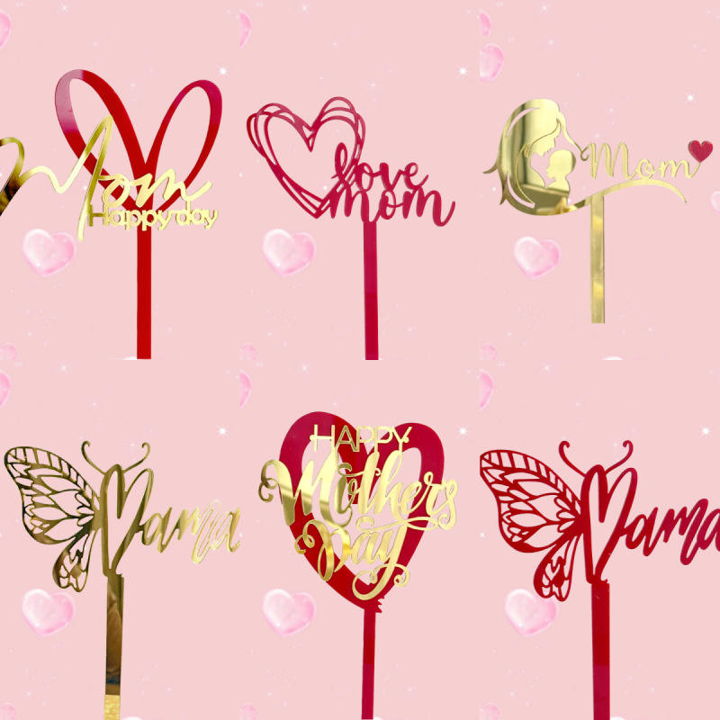 Insert de gâteau en acrylique rouge or « Maman » pour la fête des mères, la fête des femmes, décoration de gâteau « Je t'aime maman »