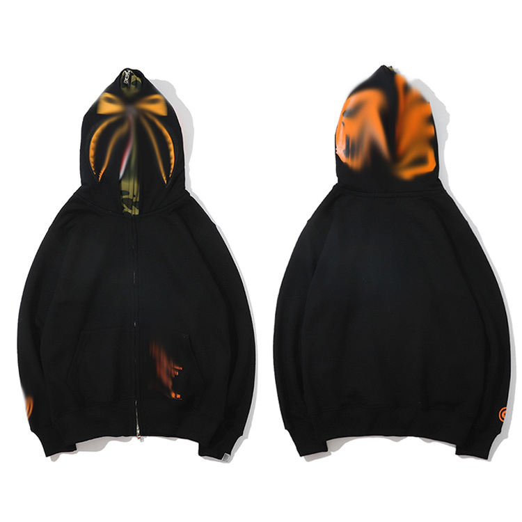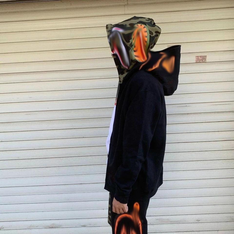 Veste à capuche double Ins Shark pour l'hiver, imprimé camouflage, cardigan ample, unisexe, tendance pour étudiants, luminescent dans le noir