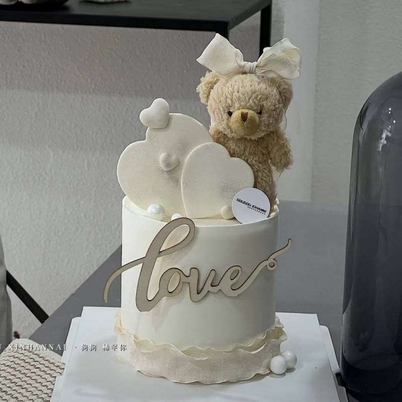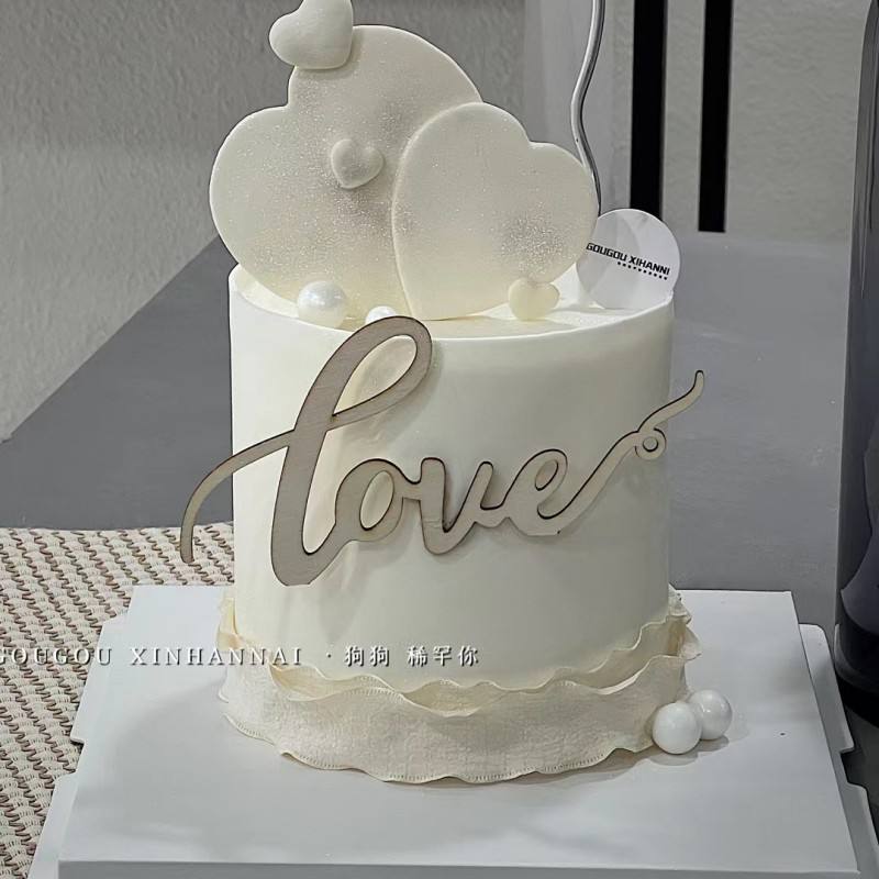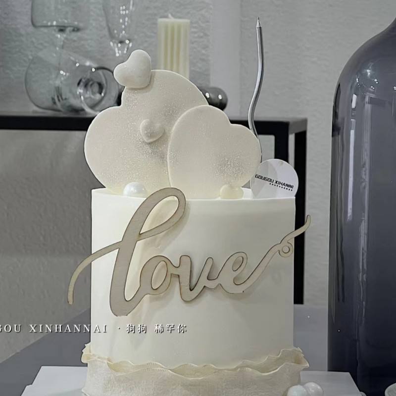 Décoration de gâteau en bois de style simple, pour fête, table de dessert, amour, Saint-Valentin, gâteau en bois