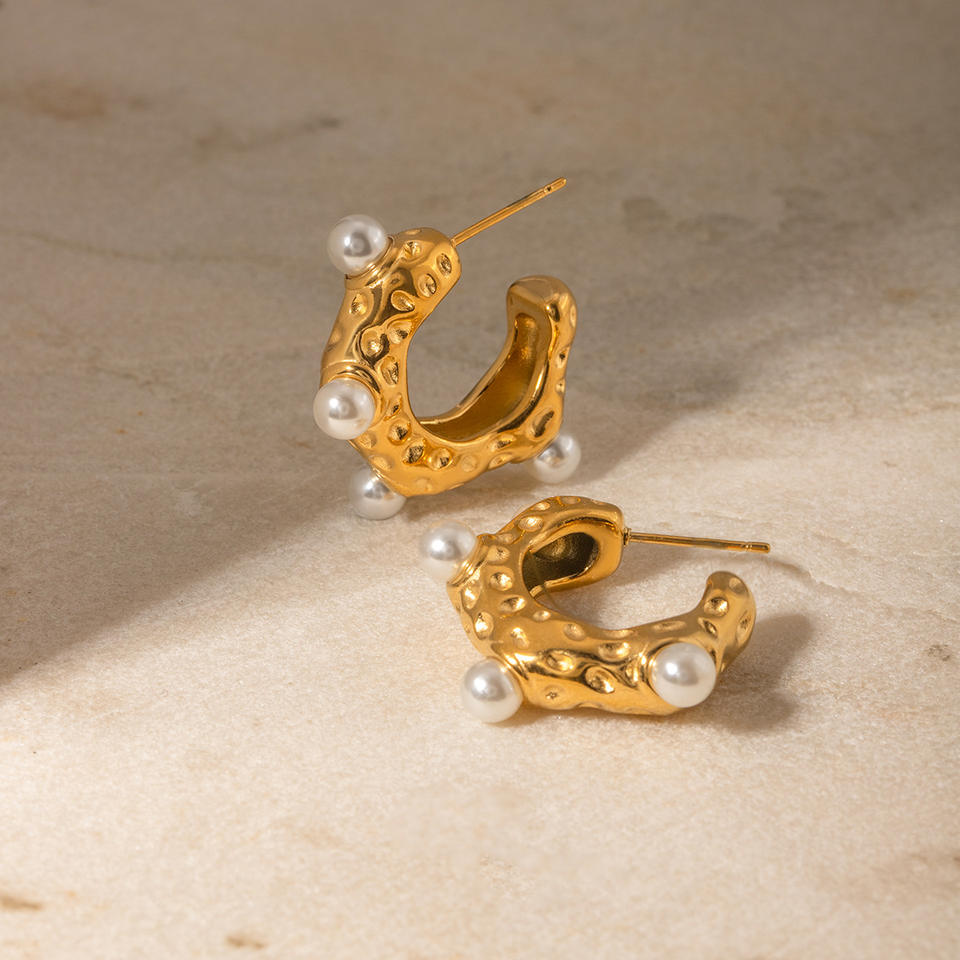 Nom du produit:Acier inoxydable shell perle marteau C boucles d'oreilles