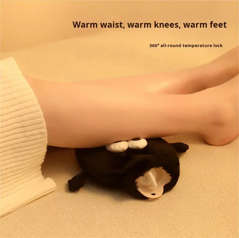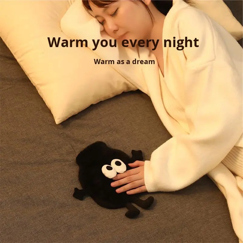 Ins-Style mignon boule de charbon dessin animé flanelle bouillotte hiver petit PVC et chauffe-ventre en peluche Silicone Mini hiver plus chaud