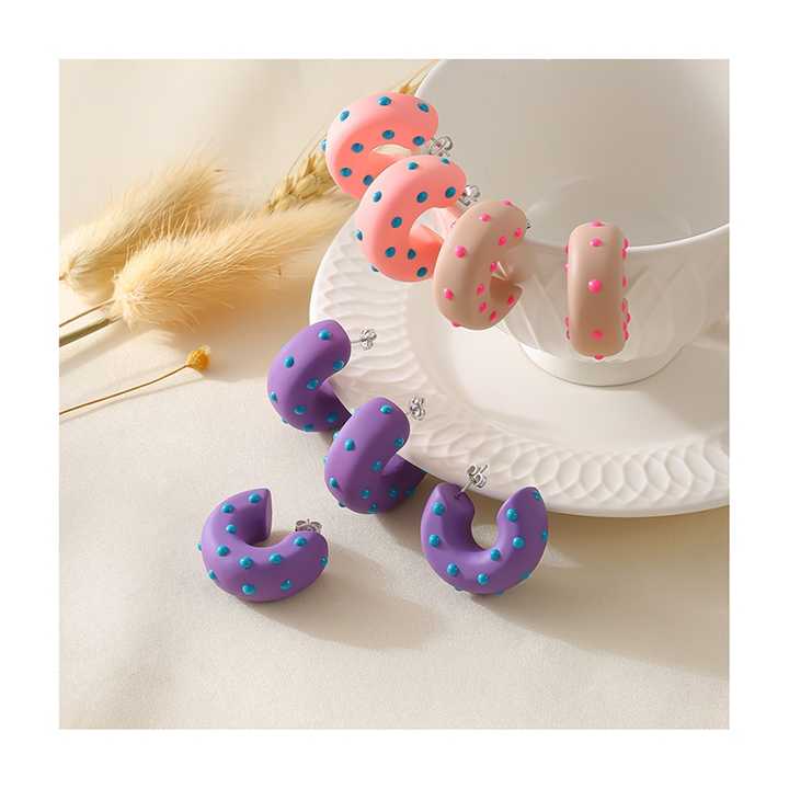 Boucles d'oreilles en résine époxy écologique style Ins, en forme de C, style pastoral, en acier inoxydable émaillé, bijoux
