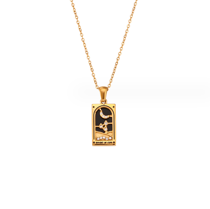 Ins Style Fashion Retro Popular Hot Selling Pendant Stainless Steel Rectangular Dripping Zircon Tarot Necklace