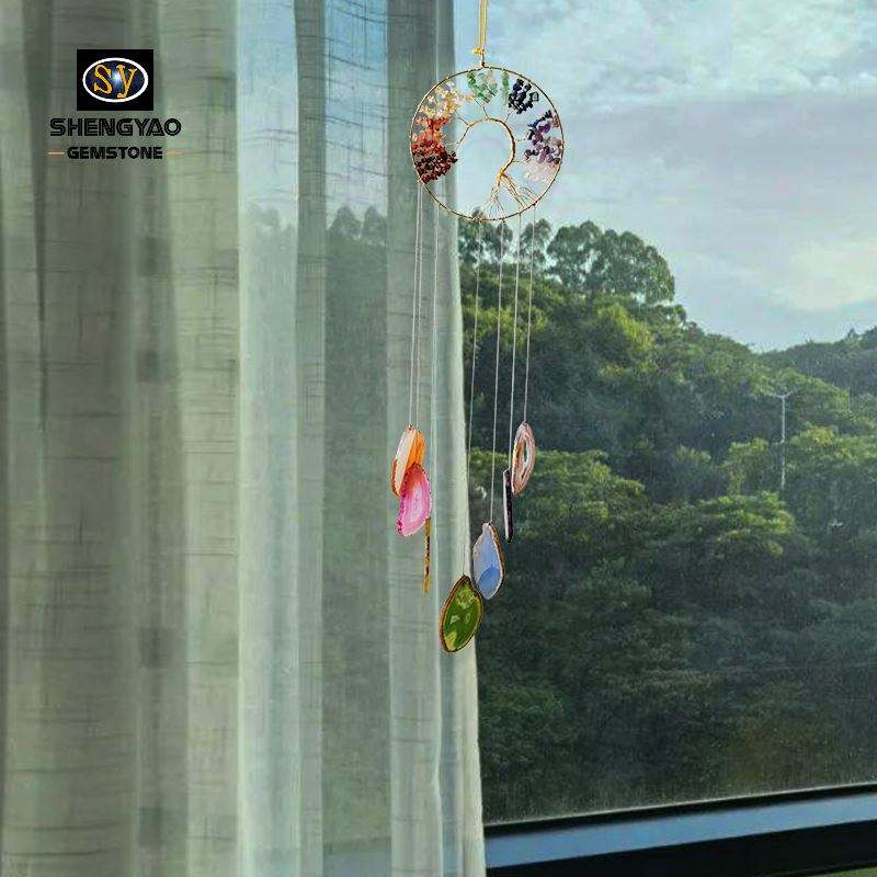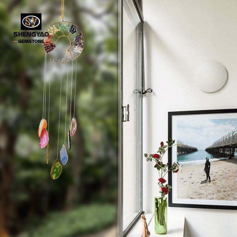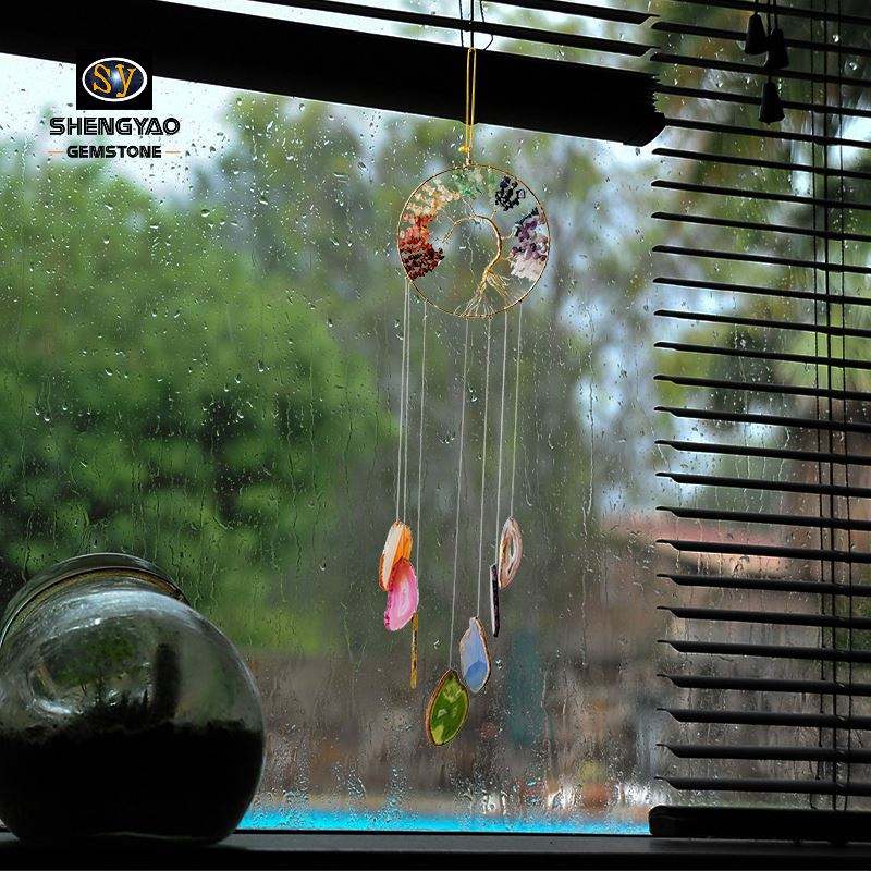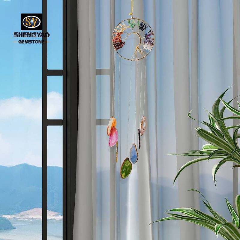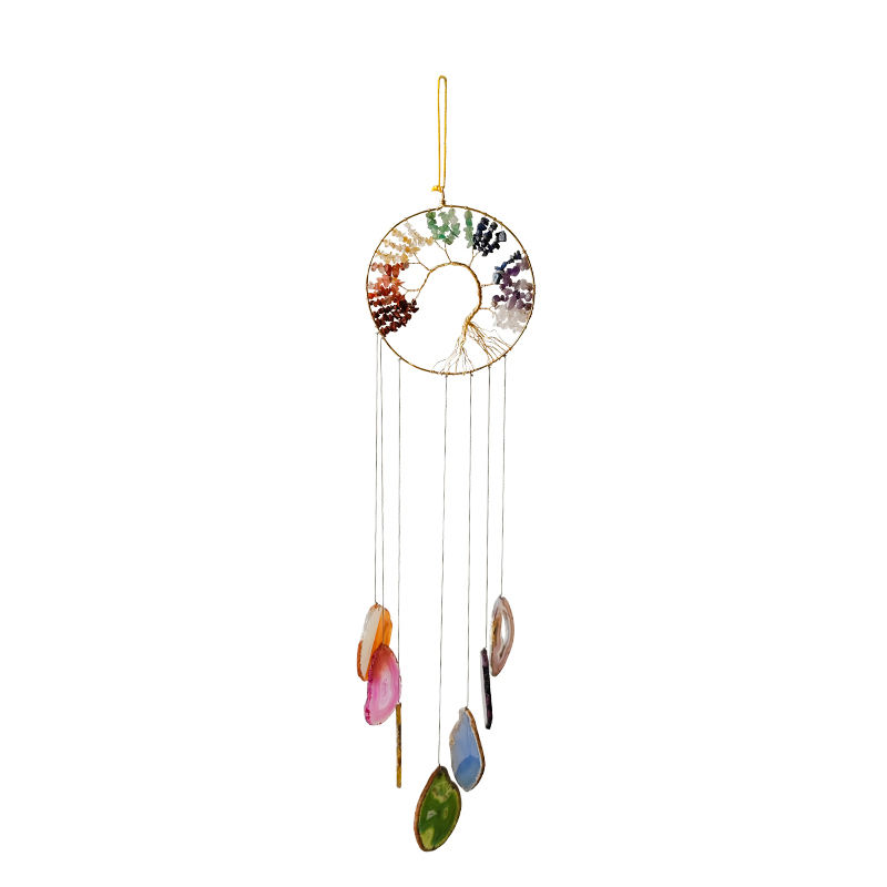 Cloche à vent en agate naturelle de style Ins, attrape-rêve en cristal, carillon à vent d'arbre de vie pour la décoration de la maison