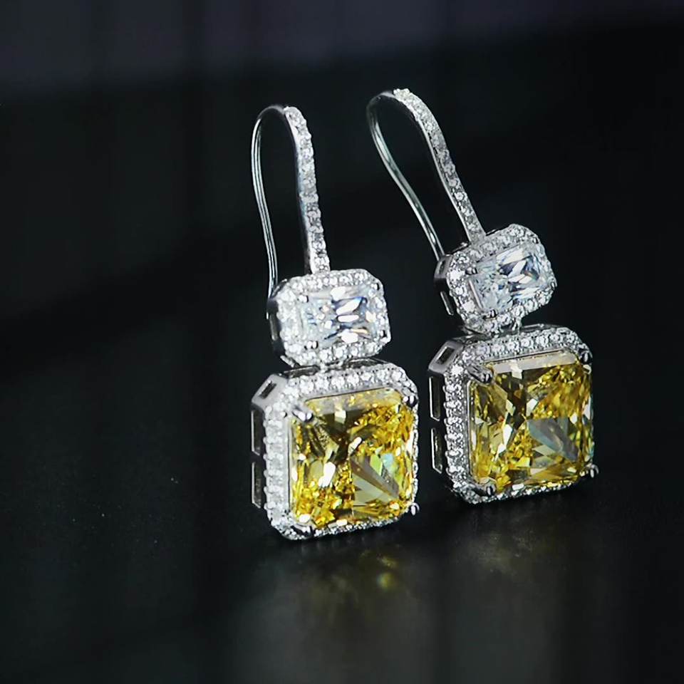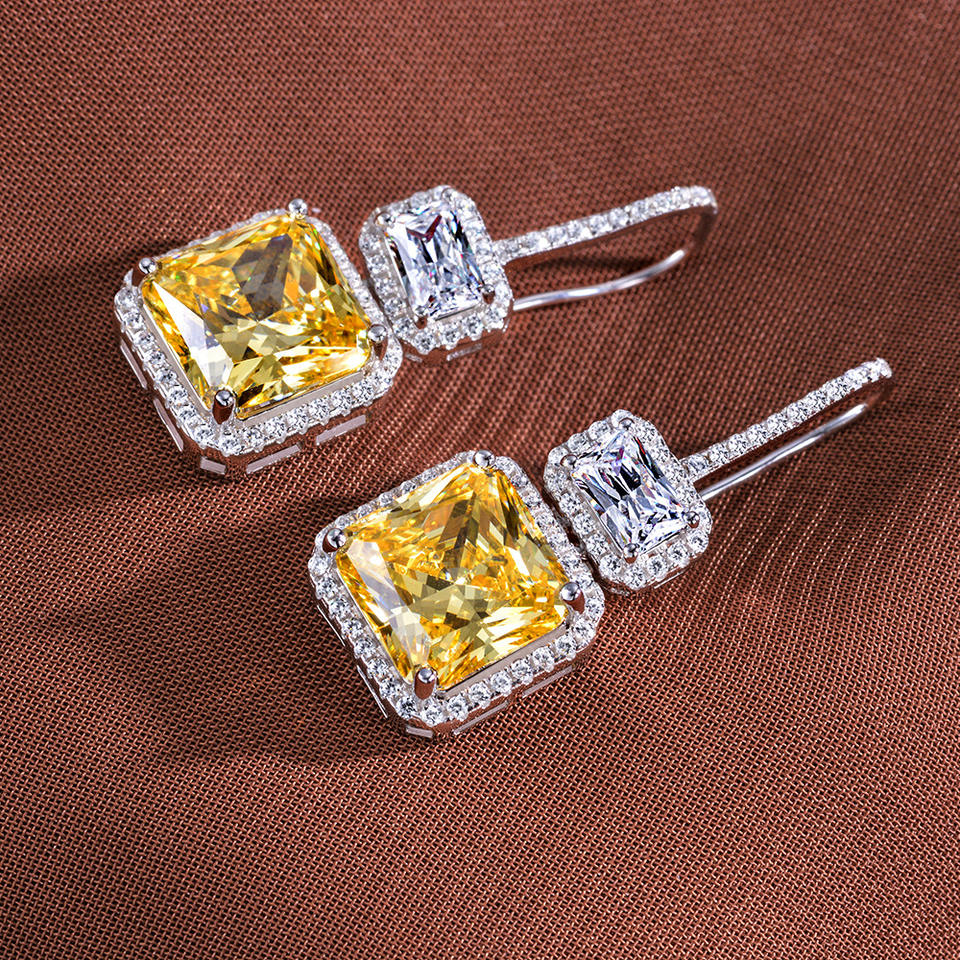 Boucles d'oreilles pendantes en zircon cubique jaune de Style Ins Boucles d'oreilles crochet plaqué or blanc pour femmes Bijoux fantaisie de fête pour dames