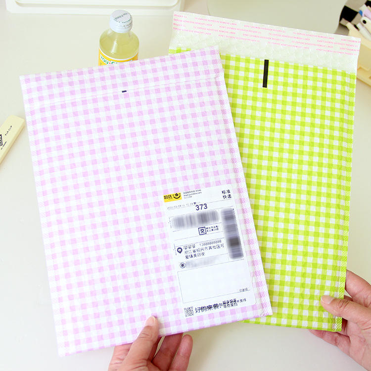 Ins wind – sac express à carreaux de couleur visage souriant mignon, enveloppe sac à vêtements, sac à bulles antichoc