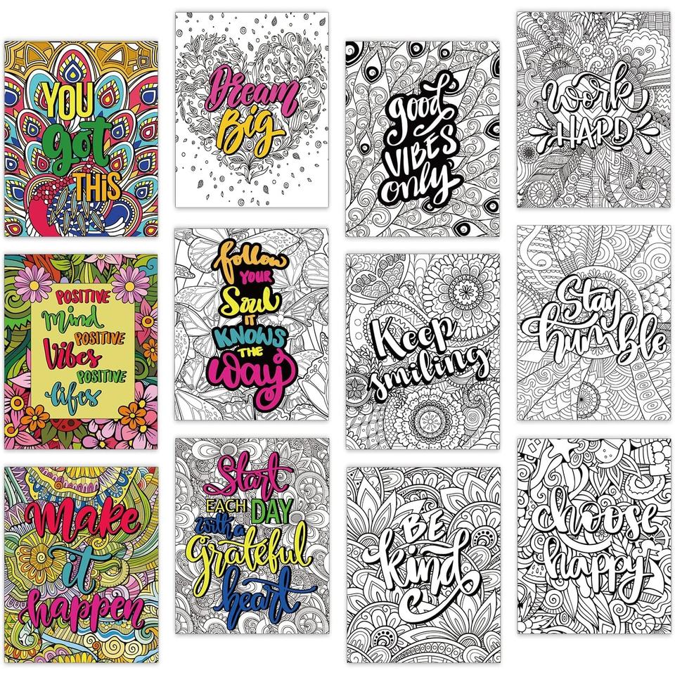 Affiches de coloriage inspirantes et positives pour adultes – Mandala – Feuilles d'affiches – Décorations murales – Cadeau – Activité artistique et artisanale